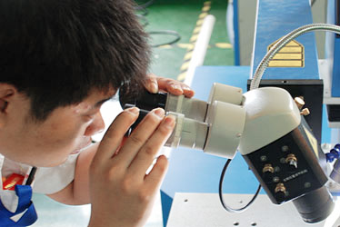 和傳統(tǒng)的機(jī)械加工相比,聚焦后的激光就像極細(xì)的無形刀具一般,將物體局部區(qū)域的表面 逐點(diǎn)逐點(diǎn)的“燒”掉,它的特點(diǎn)在于不與工件接觸,不產(chǎn)生機(jī)械擠壓或機(jī)械應(yīng)力,因此 不會(huì)改變被加工物品的物理性能;由于激光聚焦后的尺寸很小,熱影響區(qū)域小,加工 精細(xì),因此,可以完成一些常規(guī)方法無法實(shí)現(xiàn)的工藝。